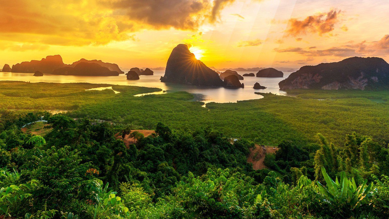 Рассвет на фоне величественных скал залива Пханг Нга — словно открытка, ожившая на глазах. Самая впечатляющая смотровая площадка Пхукета.