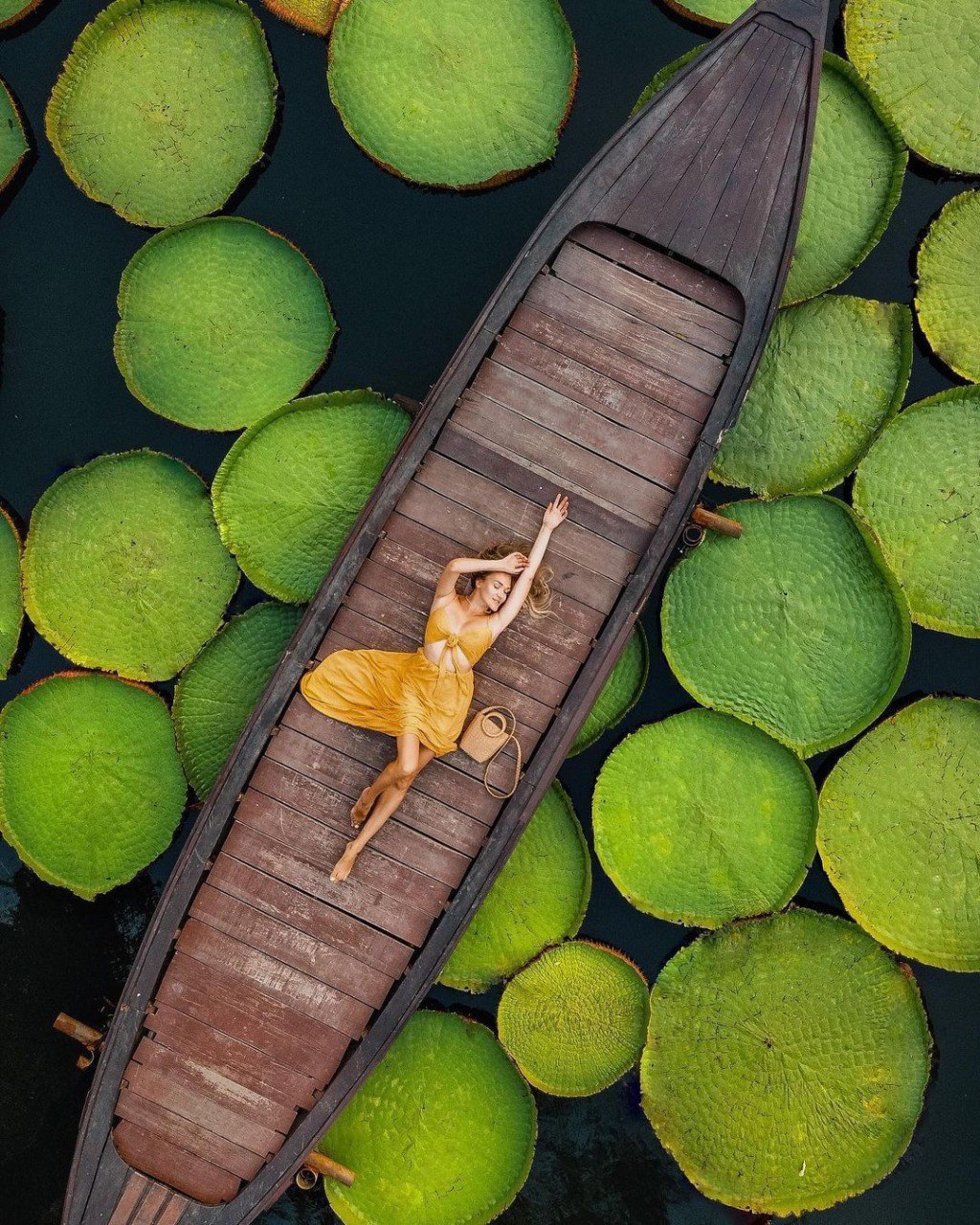 Огромные кувшинки, парящие на воде, как в сказке. Волшебный антураж, выигрышный ракурс и мягкий свет — идеальное место для фото и reels.